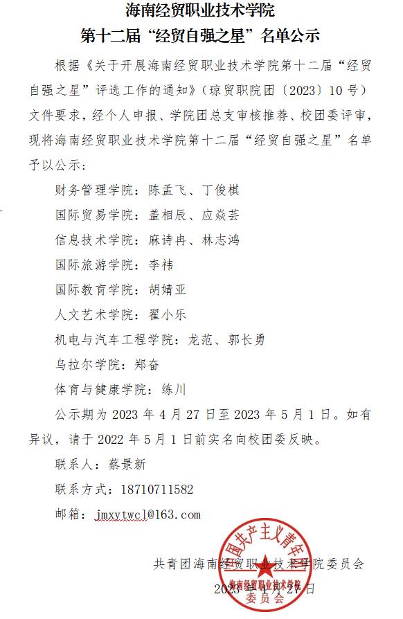 9428cn太阳集团古天乐第十二届“经贸自强之星”名单公示