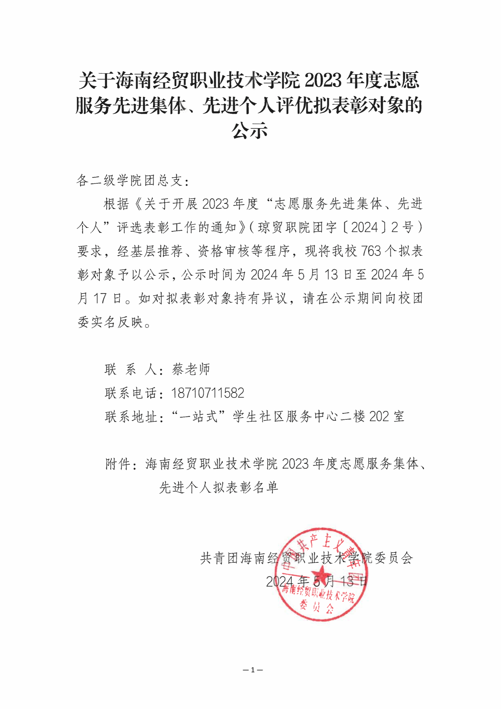 关于2023年度志愿服务先进集体、先进个人评优拟表彰对象的公示