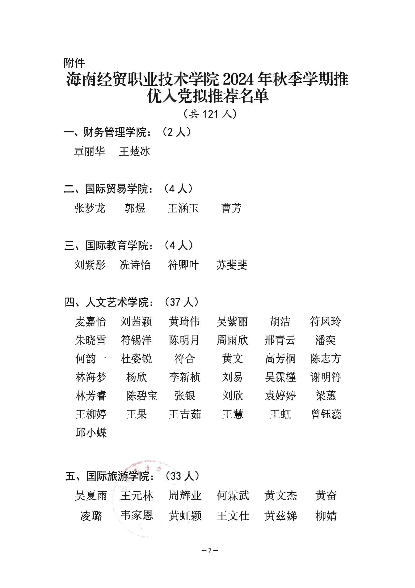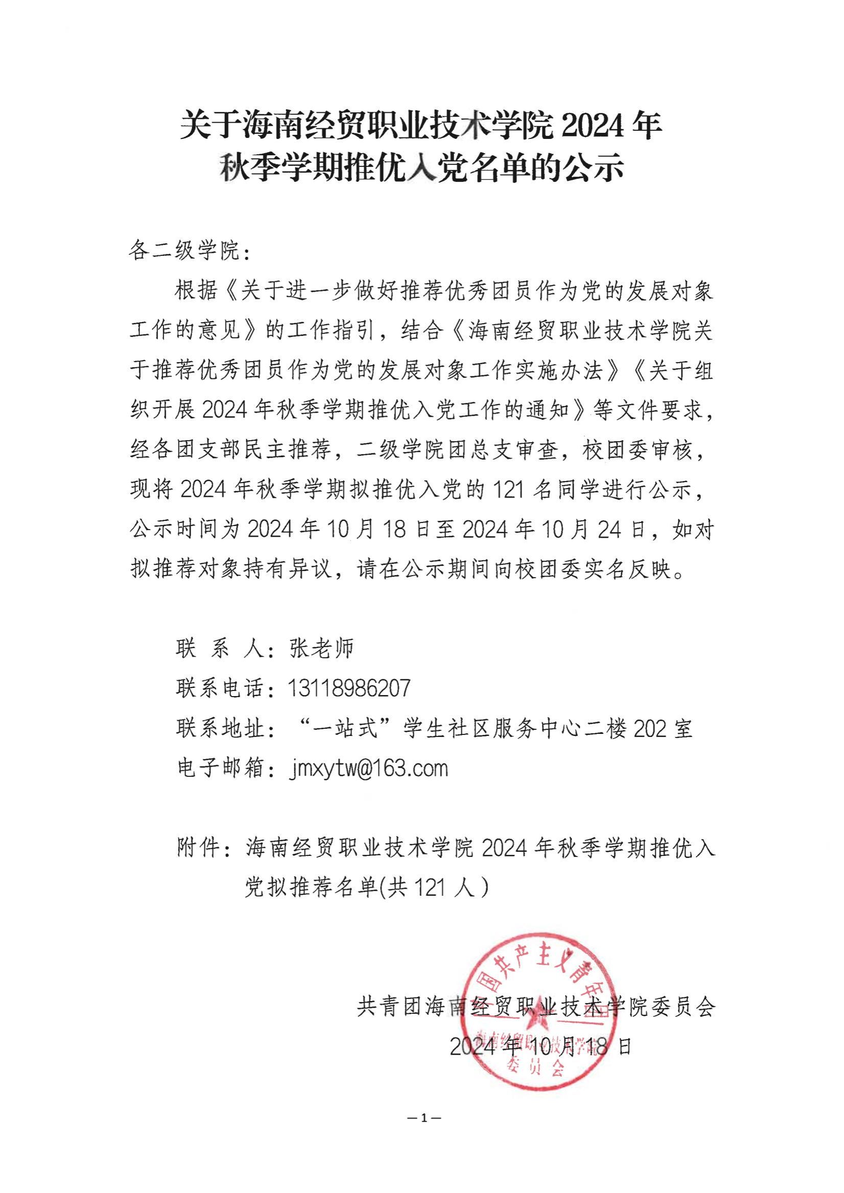 关于9428cn太阳集团古天乐2024年秋季学期推优入党名单的公示