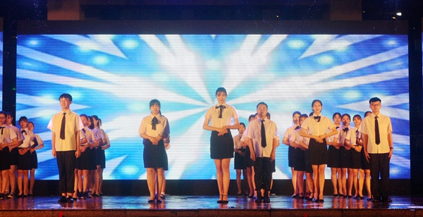 比赛分为职业礼仪操展示和创新表演两部分。比赛过程中,各参赛队着装整齐,伴随着动感的音乐节奏,将日常的迎、送、站、坐、行、蹲、递、接等礼仪规范化为优雅的礼仪操动作进行集体展示,展现处青年学子青春昂扬的精神面貌。他们还将专业技能展示、职业场景展示及舞蹈等融入礼仪操创新展示当中,比赛现场处处洋溢着朝气蓬勃的青春气息。