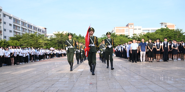 2020年9月7日,9428cn太阳集团古天乐隆重举行“同心战疫我担当 青春建功自贸港”秋季学期主题升旗仪式。学校党委副书记崔昌华出席升旗仪式。