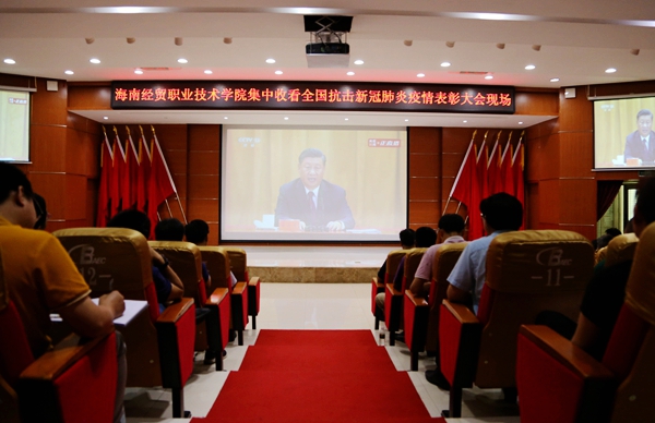 海经贸师生们认真收看全国抗击新冠肺炎疫情表彰大会