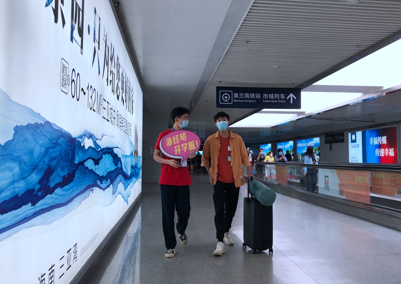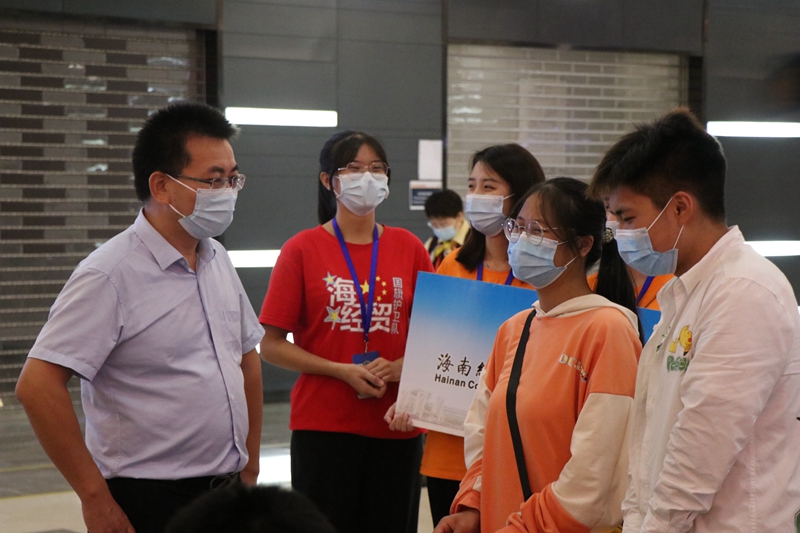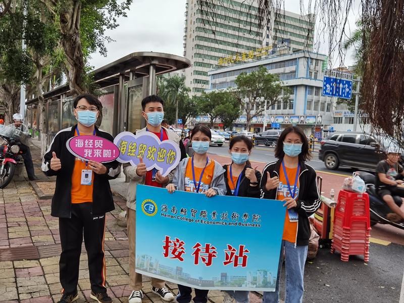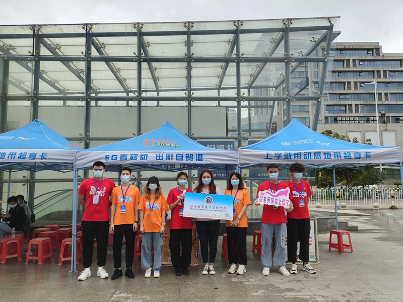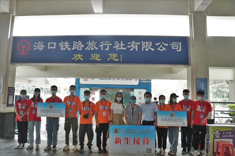2020年10月15日至16日,9428cn太阳集团古天乐校团委组织团学干部、国旗班共92名学生志愿者和12名专业教师负责校外迎新工作,在海口美兰国际机场、高铁美兰站、海口火车站、海口汽车总站、海口汽车西站、海口汽车东站等6个重要交通站点设置工作站,迎接2020级新生和家长。