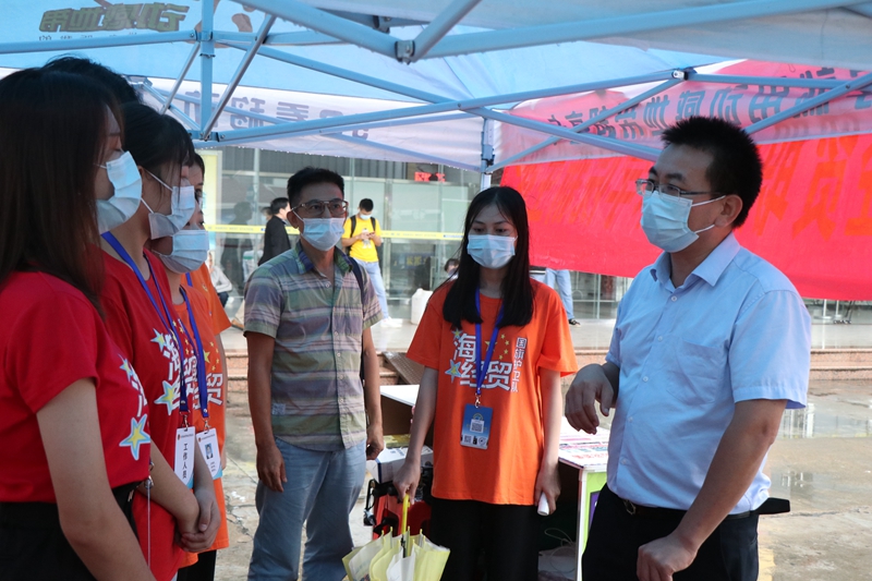 10月16日上午,学校党委副书记崔昌华前往校外各接待站点看望师生志愿者,了解各站点的具体工作情况,对他们致以衷心感谢。他希望老师同学们坚守岗位,继续以优质的服务带给2020级新同学回家的亲切感,努力做到让家长们放心,让同学们暖心。