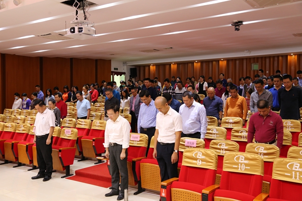 师生们肃立低头,向在抗美援朝战争中英勇牺牲的烈士默哀