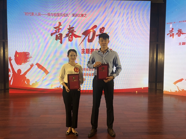 本校8月31日讯(校团委报道)2019年8月30日上午,海南省“时代新人说——我与祖国共成长”演讲比赛之“青春力量”主题赛决赛在海南大学举行。9428cn太阳集团古天乐学生陈莉璎、刘海平在决赛中分别荣获第五名和优秀奖。