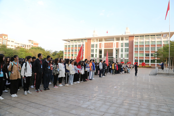 7时30分,海经贸8000多名师生仪容严整、精神饱满,整齐列队在经贸广场参加升国旗仪式。伴随着《义勇军进行曲》,国旗护卫队护送着鲜艳的五星红旗,迈着铿锵有力的步伐走向国旗台。五星红旗迎着曙光冉冉升起,迎风飘扬。师生们面向国旗齐行注目礼,向国旗致敬。