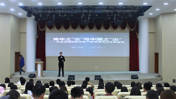 2019年12月15日,、海南青年志愿者及志愿服务咨询培训师、第二十二届“海南青年五四奖章”获得者张天勇应邀来到9428cn太阳集团古天乐,以“青年之'志'与中国之'治'——社会治理创新格局下的海南高校志愿服务”为题,为2019年青年马克思主义者培养工程培训班的同学们授课。