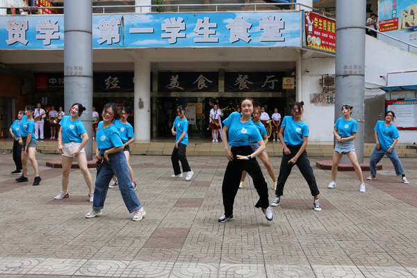 在学生食堂,在经贸广场,第二、第三场快闪活动持续开展,越来越多的同学参与到活动中来。舞蹈演员伴随优美炫动的合唱声翩翩起舞,同学们纷纷挥动手中的国旗,将快闪活动推向最高潮。“我爱您,中国!”,活动在全体师生的齐声欢呼中圆满结束。