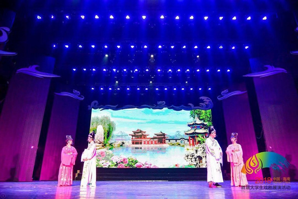 比赛项目分为话剧和戏曲两个种类。海经贸在无任何戏曲、戏剧、声乐等艺术类专业的基础上,努力在全校学生中对展演活动进行宣传推广。经过各二级学院的推荐与校内的层层筛选,20余名热爱戏曲、喜好表演的海经贸学子怀着“勤学务实、圆融卓越”的信念,经过认真、勤奋训练,最终完成3个节目的编排,并代表学校参加比赛。经过精彩而激烈的角逐,海经贸话剧《梦回红楼》荣获话剧类三等奖,琼剧《阳春院劝学》、豫剧《打金枝+穆桂英挂帅》荣获戏曲类比赛三等奖。