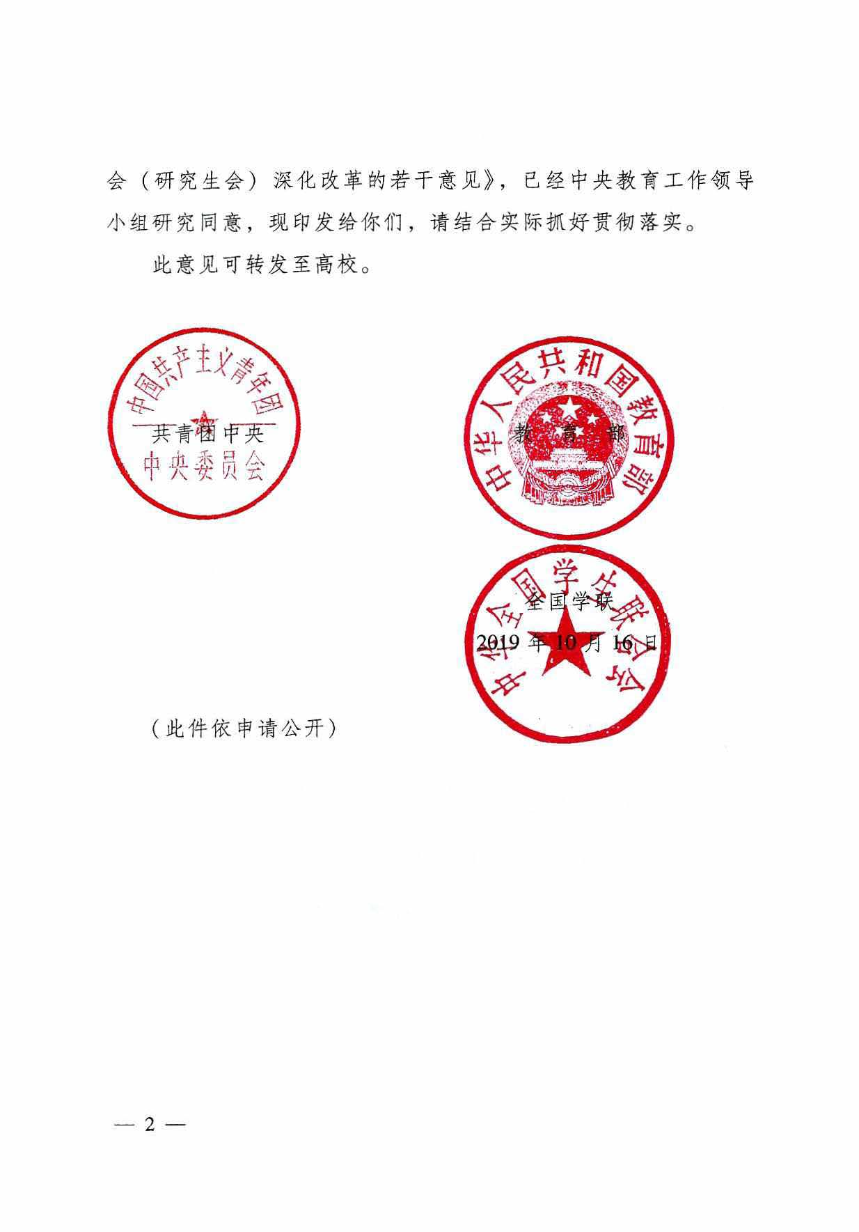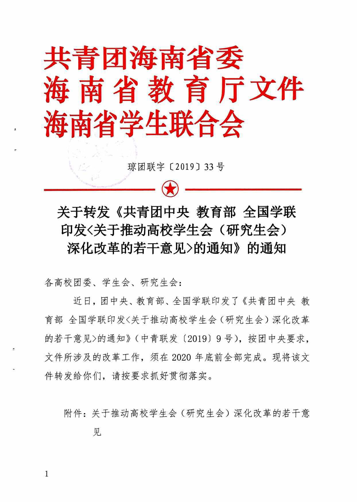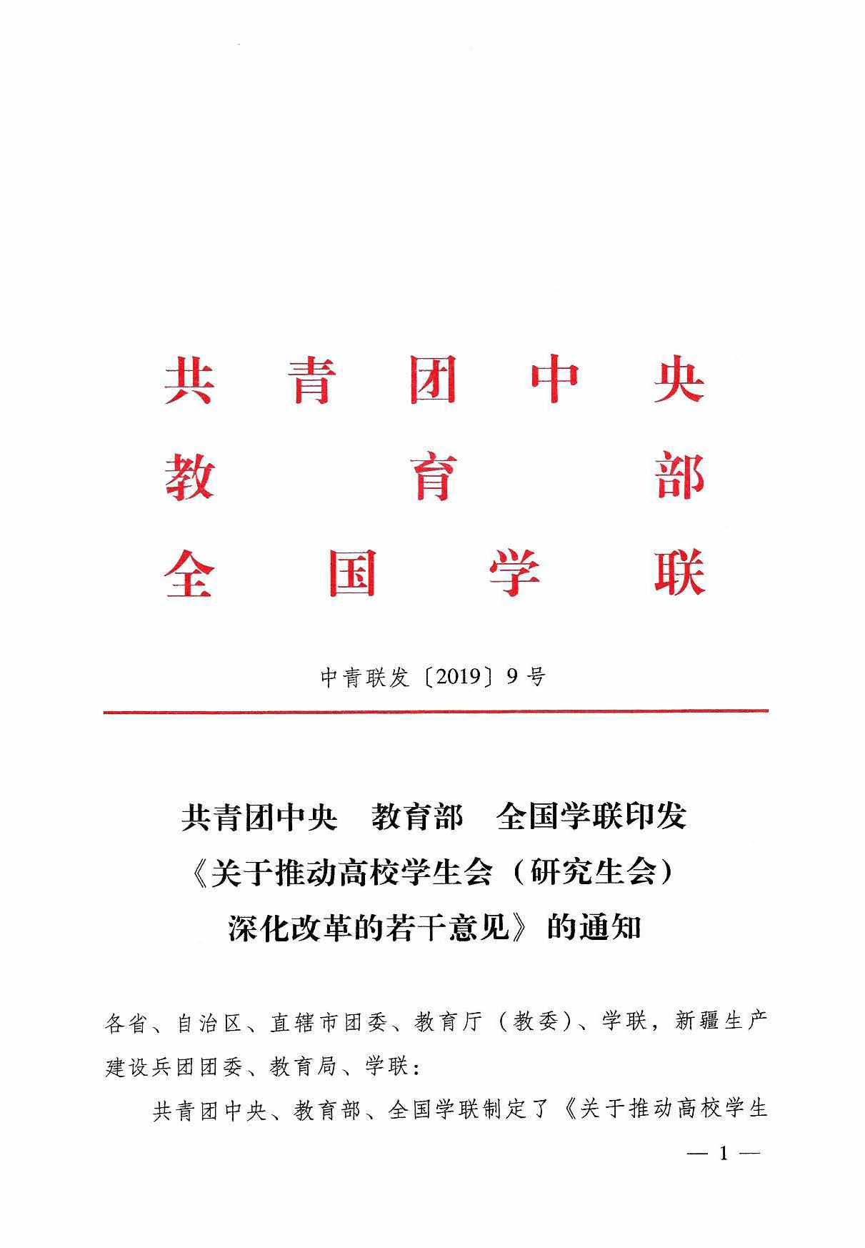 关于转发《共青团中央 教育部 全国学联印发<关于推动高校学生会(研究生会)深化改革的若干意见>的通知》的通知