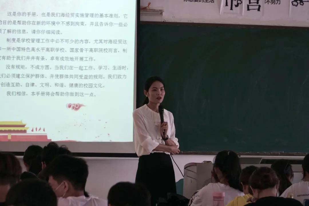 新生入学教育是大学生活中的重要第一课,是做好大学生教育管理工作的基础。国际旅游学院为帮助新生尽快适应大学生活,树立健康积极的心态。9月15日至16日,学院精心谋划,科学设置,从思想修养、礼仪礼貌、校纪校规、安全教育、奖励资助政策、职业生涯规划、入党流程教育、禁毒防艾、素质拓展等方面给新生们送上一份别样的“开学第一课”。