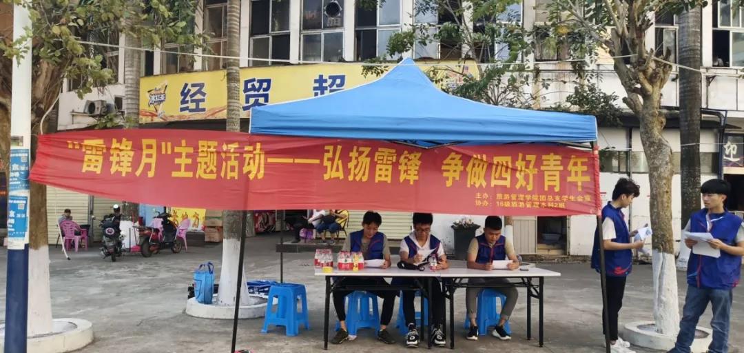 2019年3月5日是全国第56个“学雷锋纪念日”及第20个“中国青年志愿者服务日”为深入贯彻十九大精神,倡导新时代新风尚,大力弘扬雷锋精神和志愿服务精神。3月5日,我校旅游管理学院16级本科二班的同学在校园内开展了以“发扬宣传雷锋精神”为主题的志愿服务活动,用实际行动宣传发扬雷锋精神。