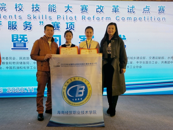 参赛选手在杨卿、王晓明两位老师的悉心指导下,首次参加全国职业院校技能大赛改革试点赛,在与全国技术能手比试中,敢打敢拼,展示了海经贸学子风采,为学校赢得了荣誉,也为海南省代表队赢得了好成绩。